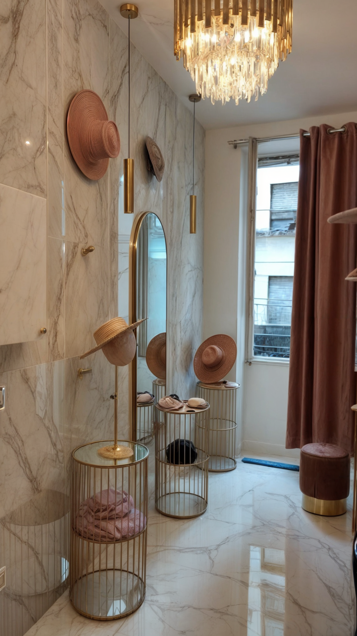 Bienvenue chez Thaliano, un showroom chic situé à Paris 19, où l'élégance rencontre le girly. Les chapeaux féminins y sont exposés dans un cadre raffiné avec des touches de rose et de doré, rehaussées de moulures parisiennes. Un espace atelier fonctionnel permet aux artisans de créer dans un environnement inspirant. Thaliano allie parfaitement luxe, créativité et charme parisien pour une expérience visuelle unique.